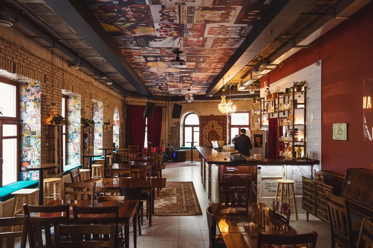 Бар превращается в актовый зал, где можно читать стишки у ёлки, петь хором, клеить снежинки и наконец-то не притворяться взрослым.