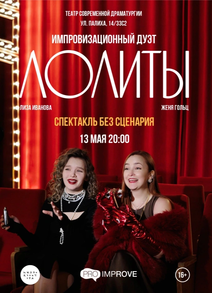 Дуэт «Лолиты» вновь сыграет полностью импровизационный спектакль по историям зрителей: твои признания, неловкости, мечты и безумства превратятся в яркое, смешное и неожиданно узнаваемое шоу.