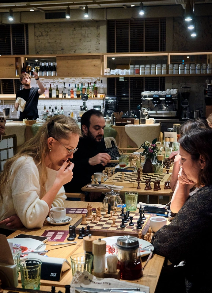 Соберутся в тёплом ресторане Grace Bistro, чтобы познакомиться, разобрать основы шахмат, сыграть первую партию и завершить вечер с бокалом игристого, подводя личные маленькие итоги уходящего года
