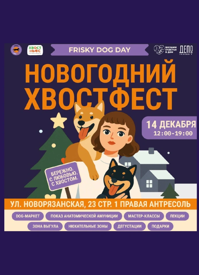 Проект Frisky Dog Day совместно с pet-friendly сообществом «Хвост Ньюс» и благотворительным фондом «Возьми счастье в дом» подготовили настоящий праздник, где каждый гость почувствует себя особенным, а комфорт и естественные потребности собак будут стоять на первом месте.