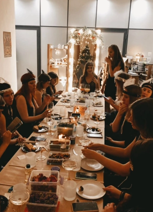 Окунись в атмосферу Америки 20-х годов: шик, эстетика, эйфория, блёстки, перья, золото… + творческий мастер-класс по созданию потрясающих кокосовых свечей в стильном исполнении. Роскошь каждой детали, чувственный джаз и изысканный фуршет с игристым.