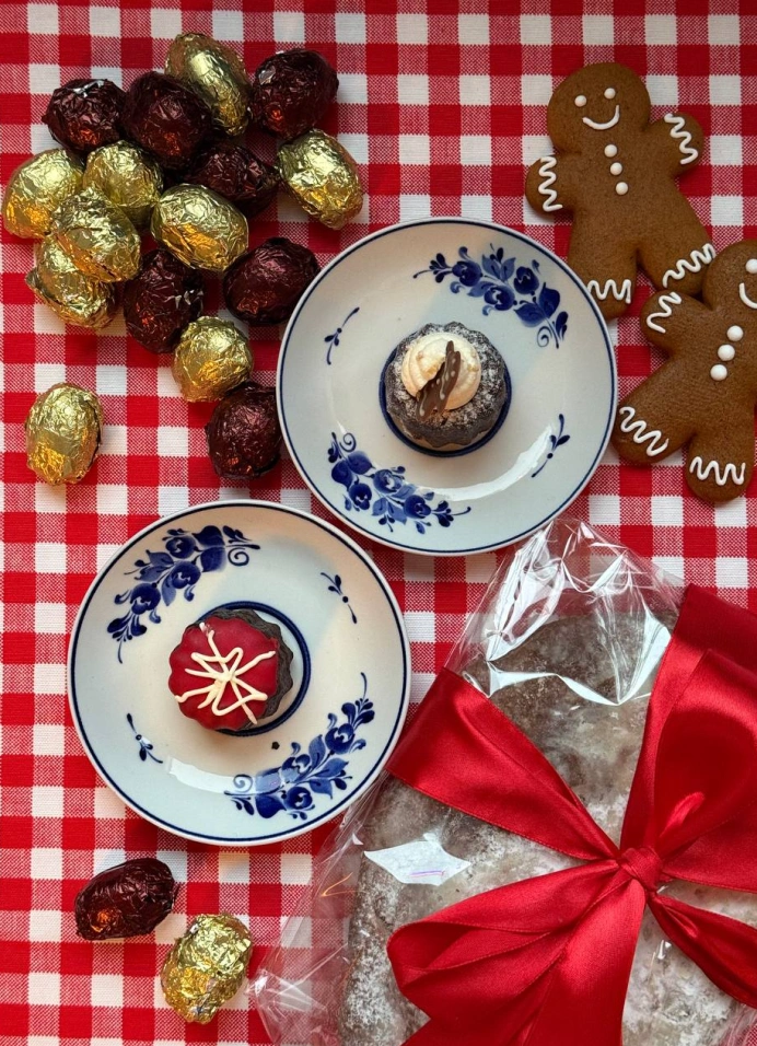 • Выпечка: тыквенный пирог, хот-дог с брусничным конфитюром, орешки с предсказаниями, пряничные человечки и штоллен.