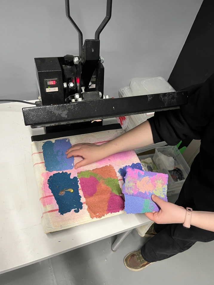 Измельчишь подложки из пульперкартона в блендере с водой, с помощью специальных рамок сформируешь из сырья открытки, а затем просушишь их под термопрессом.