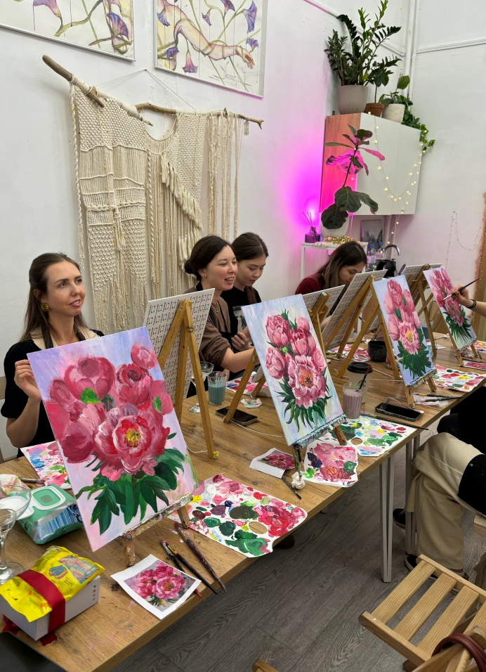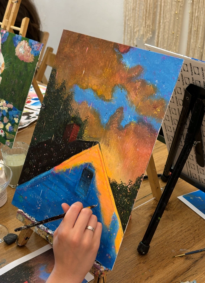 Мастер-класс, где ты сможешь за одно занятие написать собственную картину. Подходит для людей без опыта рисования, художники помогают в процессе.