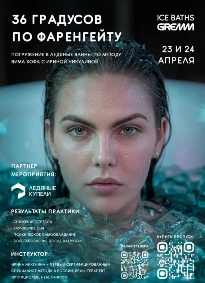 Под руководством сертифицированного инструктора Ирины Никулиной здесь пройдут тактичные и целительные погружения в ледяные ванны. Ты сможешь познакомиться с методикой, которая изменила представление о