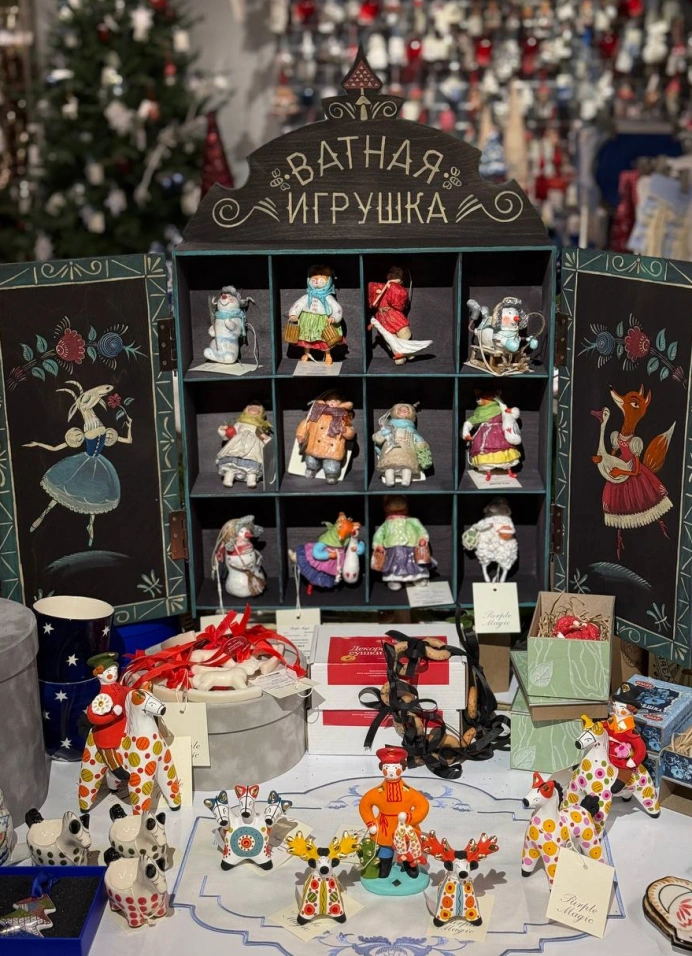 С теплом вспоминаем украшения, которые мы бережно заворачивали в вату вместе с родителями: семафоры, игрушки на прищепках, из папье-маше (Душистые радости) и ваты (Кузьминская игрушка), мультяшные персонажи, флажки, гирлянды, стеклянные бусы, — всё, как в детстве.