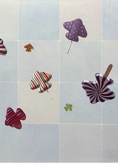 Аурель К. Базедов работает с абстрактными композициями, превращая хаотичное наложение материалов в прозрачные слоистые структуры, где каждый жест и каждый пигмент становятся частью единого ритма. Тимур Гасумов обращается к образам авиации, соединяя романтику полёта и детское восхищение небом с поэтикой движения и стремления. Даниил Соболев исследует внутренние состояния человека, превращая тревогу и ожидание в наивные, экспрессивные образы своей серии «Инопланетяне».