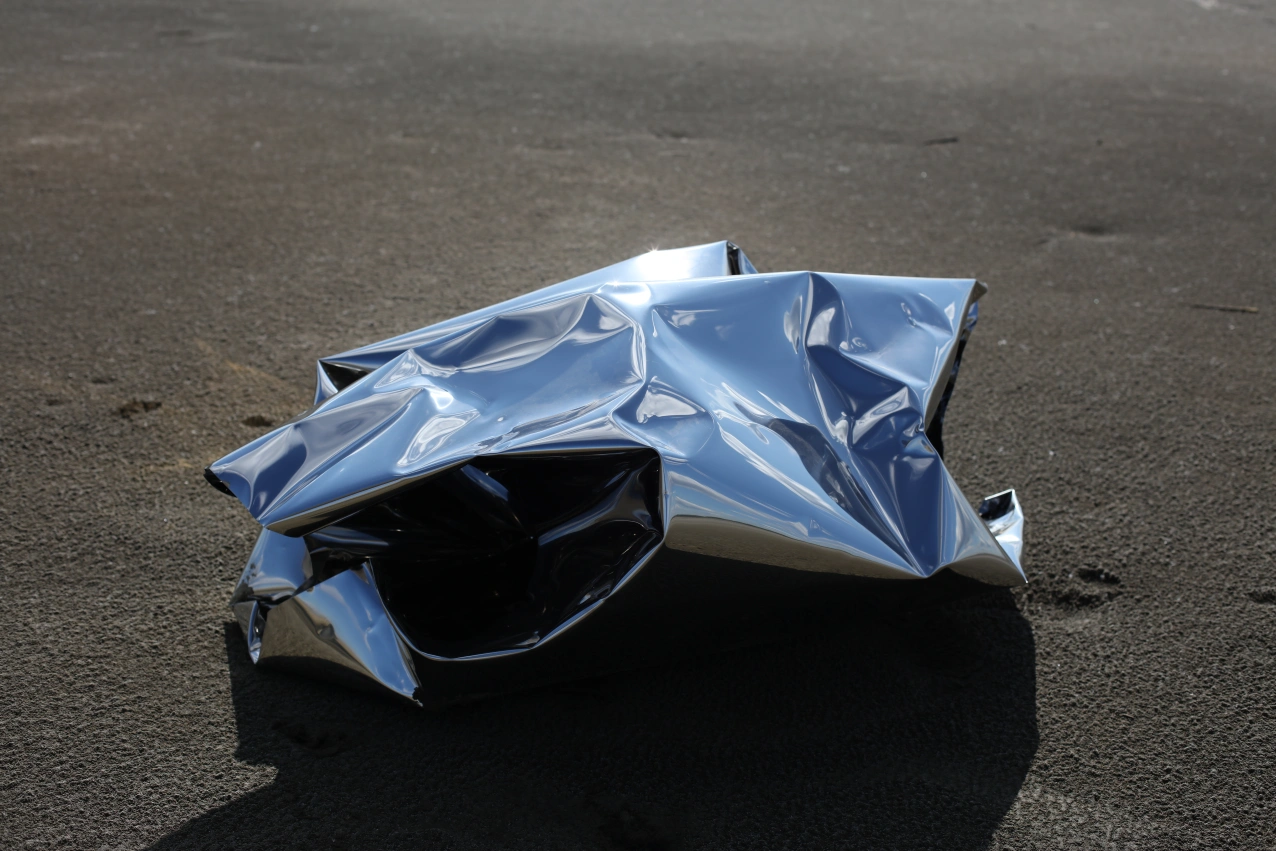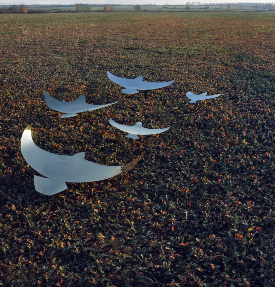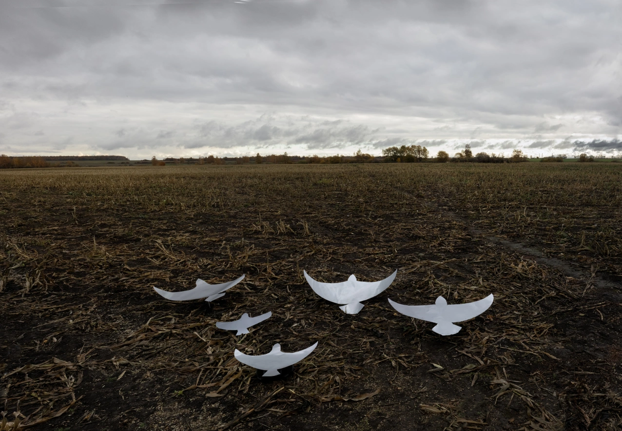 «С точки зрения неба» — торжество возможного: неподъёмный жёсткий материал, воплощаясь в форме птицы, концентрирует в себе идею полета и заключает в себе небо, которое само летит по земле.