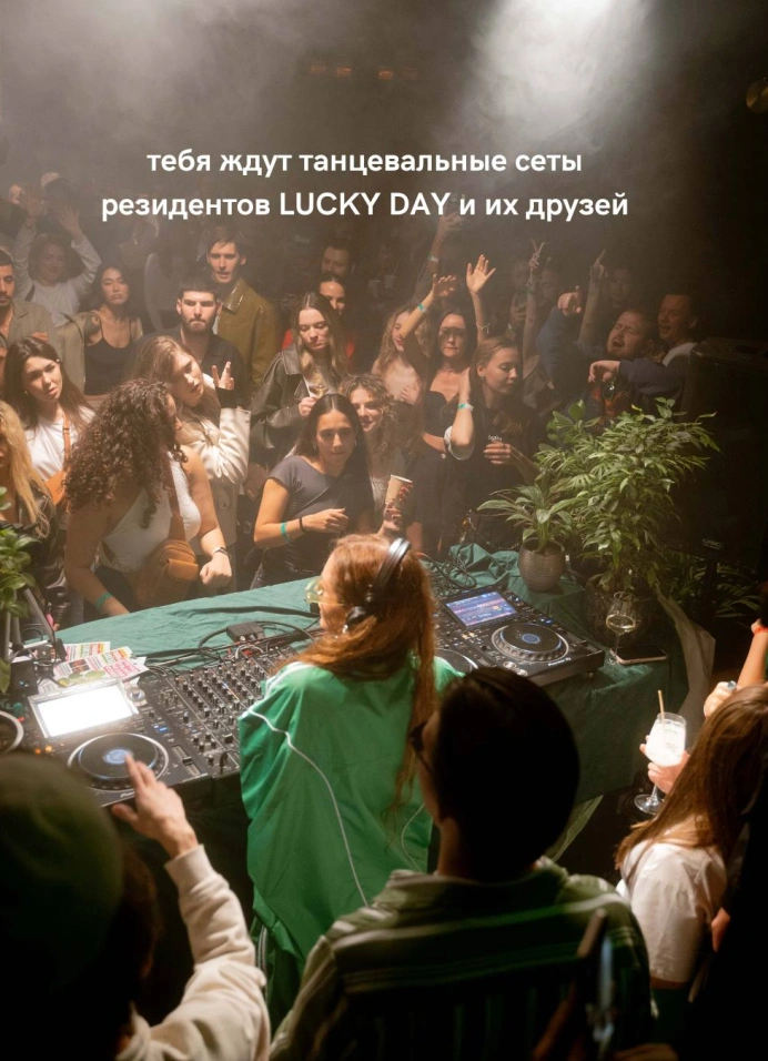 В эту ночь зазвучат афро-славянские частушки в сетах резидентов Lucky Day и пробудятся творческие силы на выставке и мастер-классах Neighbors под покровительством Александра Тито.