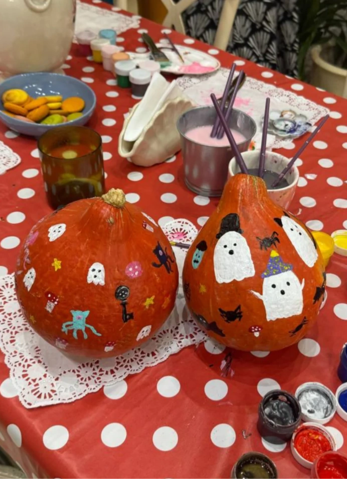 — раскрашивание тематической тыквы и двух свечей с мистическими элементами