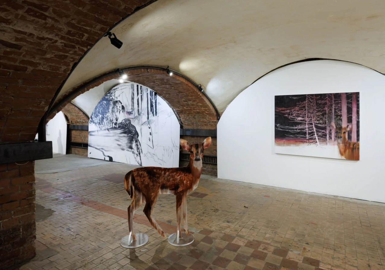 Экспозиция представляет собой фрагмент многолетнего проекта «Внутренний лес», в котором биографический опыт осмысляется через метафору лесного пространства. Разные зоны этого леса соответствуют этапам взросления, травмам и надеждам. Здесь сказочные персонажи ищут справедливый мир, утопающие в снегу обнаженные тела говорят об уязвимости, а скелеты и визуальные искажения создают ощущение зыбкости реальности.