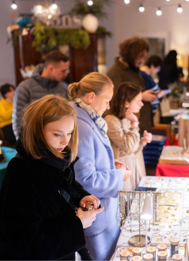 Ты сможешь прогуляться по недавно отреставрированному московскому особняку, посмотреть домашний спектакль, послушать концерт барочной музыки в бальном зале и выбрать подарки.