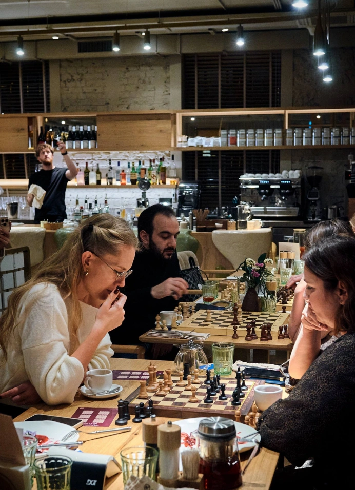 Это формат «умного» отдыха в расслабленной обстановке, где шахматы становятся частью стиля и общения. Лёгкое обучение, вдохновляющая атмосфера ресторана и новые знакомства — всё, чтобы провести время со вкусом и смыслом.