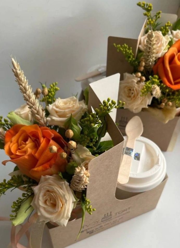 Тёплое творческое занятие, на котором ты сможешь создать красивый подарок своими руками — нежную цветочную композицию и вкусный торт в стакане с оригинальным оформлением.
