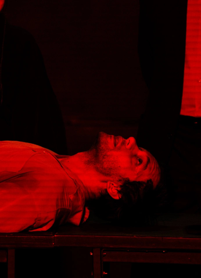 Спектакль развивается в едином беспрерывном потоке. Несмотря на ясность сюжета, автор постоянно помещает нас в ситуацию риска, где нет шансов на спасение.