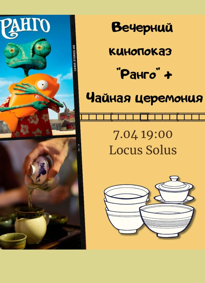 Просмотр и обсуждение за чашкой ароматного китайского чая фильм «Ранго» — необычную анимационную историю, которая притворяется весёлым вестерном, но на деле оказывается куда глубже.