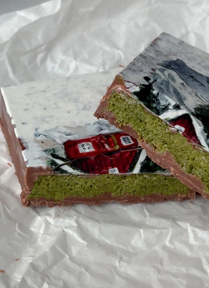 На выбор 2 начинки: с вишней и с катаифи (очень сбалансированная, с приятной кислинкой) и классическая с фисташковой пастой и катаифи.