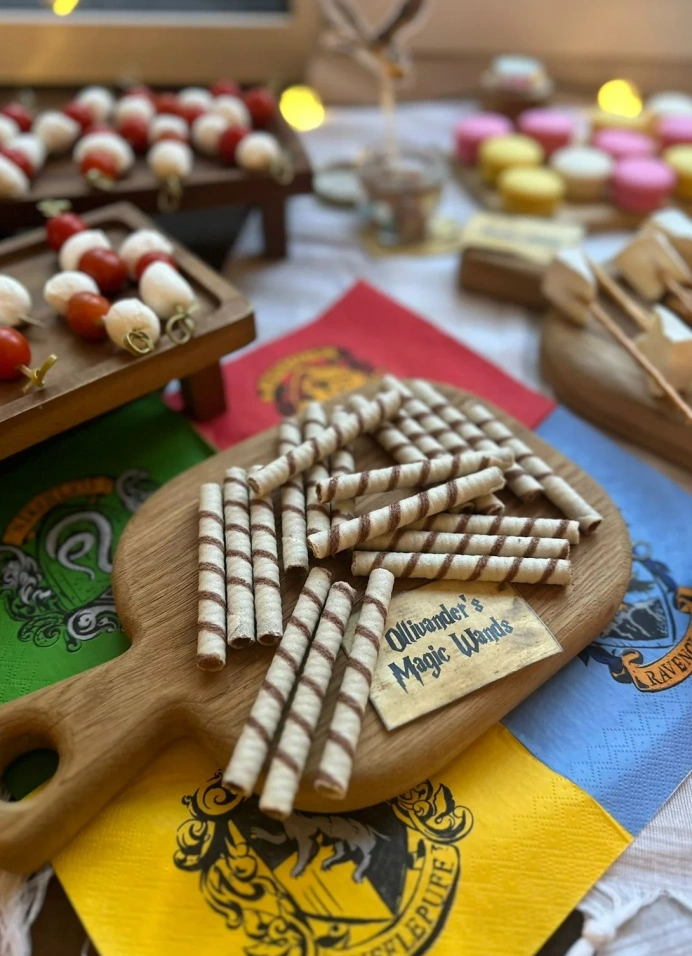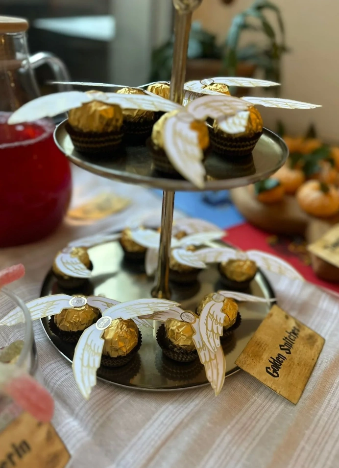 Заботливо украшенная деталями студия, летающие письма с приглашением на учебный год, говорящая распределяются шляпа, тематический фуршет с Феликс Фелицис и летающими снитчами, множество свечей и многое-многое другое.