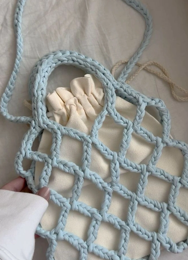 На мастер-классе будут вязать самую весеннюю сумку: лёгкая сетка и объёмный цветок в качестве акцента — это выглядит стильно и очень «про сейчас».