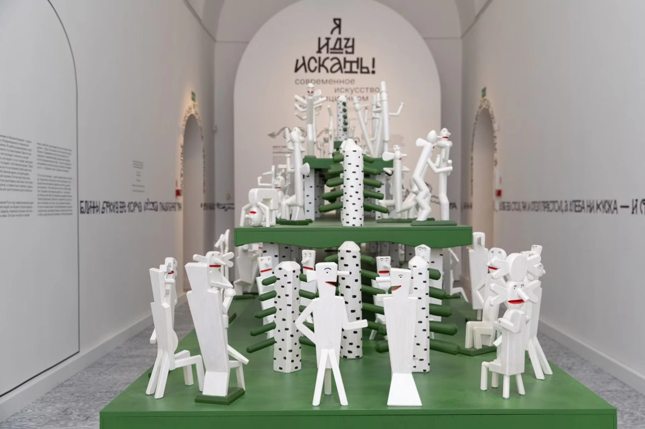 Выставка «Я иду искать!» – это актуальное антропологическое исследование в формате тотальной инсталляции. Её придумала и создала куратор Катя Бочавар (а антрополог Никита Петров помог её научно обосновать), которая исследовала особые традиции и обряды, помогающие человеку перейти из одного жизненного состояния в другое. Впрочем, «обряды перехода» включают в себя не только жизненные ритмы, но и природные пульсации: смену времен года, света и тени, сна и яви.