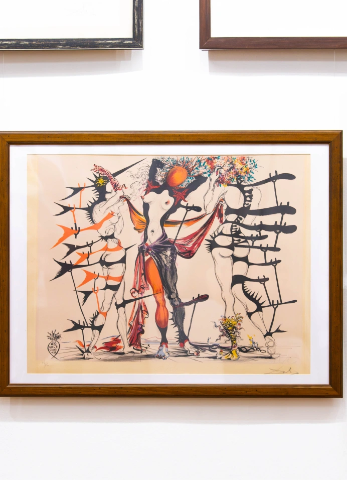 Графические произведения, представленные на выставке, выполнены в различных техниках: гравюра, акварель, смешанная техника, пушуар, литография и ксилография. Дали был опытным гравером и художником-графиком. Он особенно предпочитал литографию, так как она сохраняла особую тонкость его линии. Испанский гений подписывал каждую работу, объединял их в серии и к каждой разрабатывал портфолио.