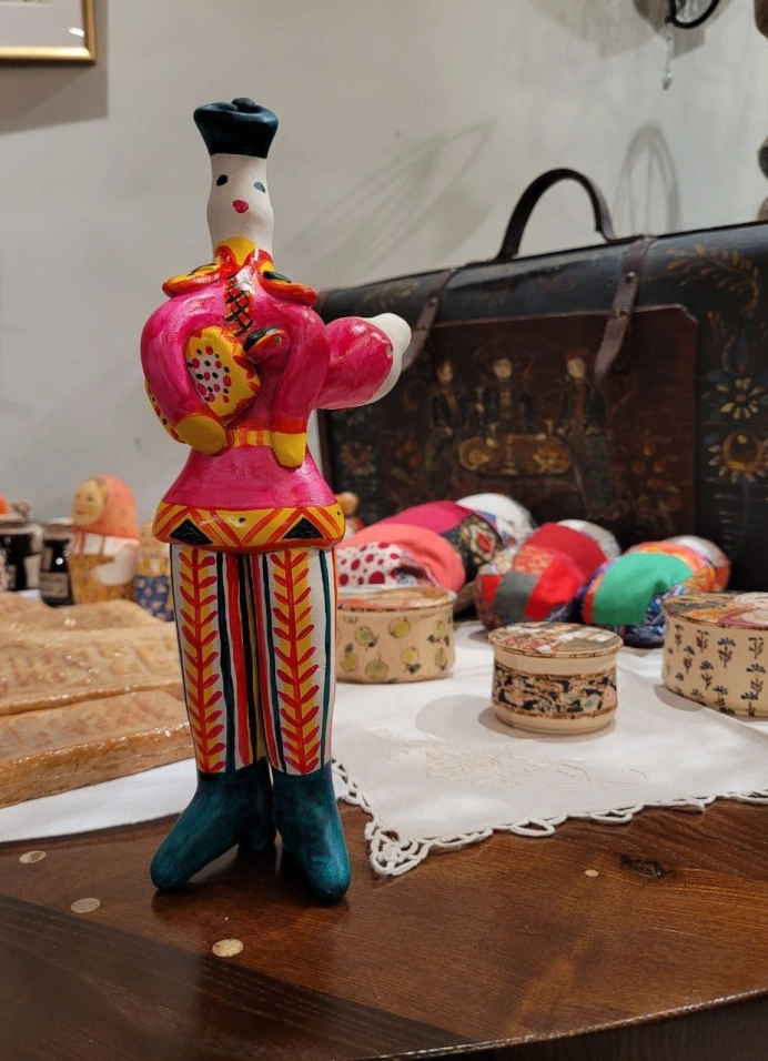 И, конечно, дело не только в пряниках. Тебя ждут внезапные абашевские олени и собаки, филимоновские парни и девицы, кожуховские петухи — розовые до невозможности. А ещё — старинные рязанские и воронежские рубашки. Барби ещё не существовало даже в проекте, но розовый уже был.