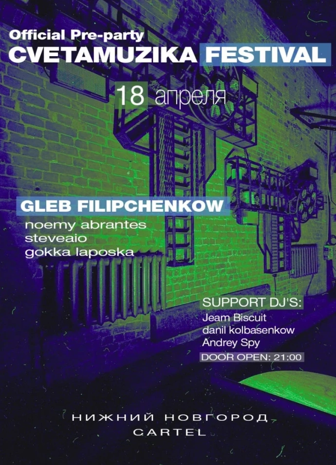 Основной исполнитель ночи станет продюсер электронной музыки Глеб Филипченков, который представит живое шоу вместе с вокалистами из Африки — Noemy Abrantes и Steveaio, а так же совместные работы с gokka laposka.