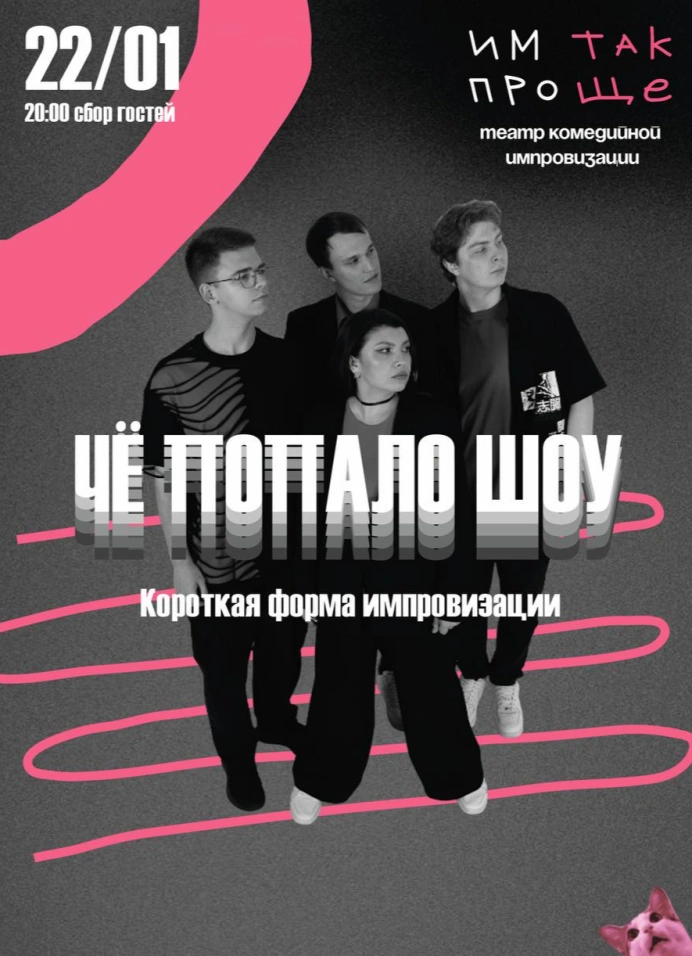 «Чё попало шоу» с командой «Им так Проще» — это импров-шоу, где нет сценария и заготовок, а есть только ты и твои идеи, которые на твоих глазах превращаются в историю.