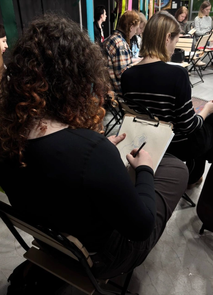 Студия набросков «Контур» приглашает тебя порисовать с натуры в декорациях выставочного проекта «В горошек». У тебя будет 2 часа на атмосферное рисование и приятное общение, а в конце встречи ты сможешь посетить экскурсию от автора выставочного проекта.