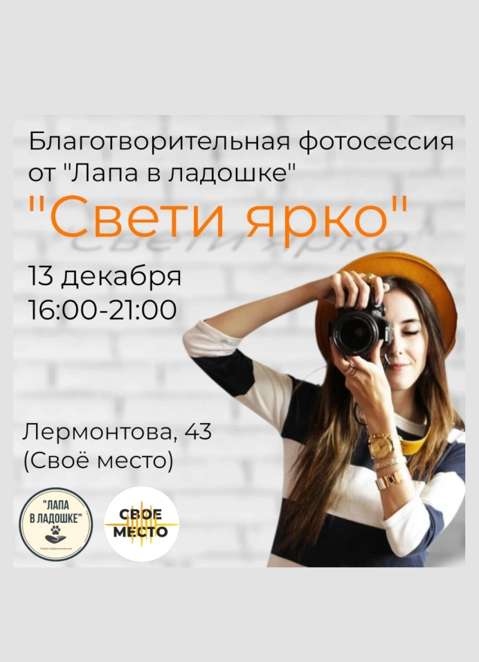 Благотворительная фотосессия от фонда помощи животным «Лапа в ладошке» — это прекрасная возможность погрузиться в предновогоднюю атмосферу и унести с собой яркие эмоции и красивые кадры. Все собранные средства пойдут на оплату лечения бездомных животных.