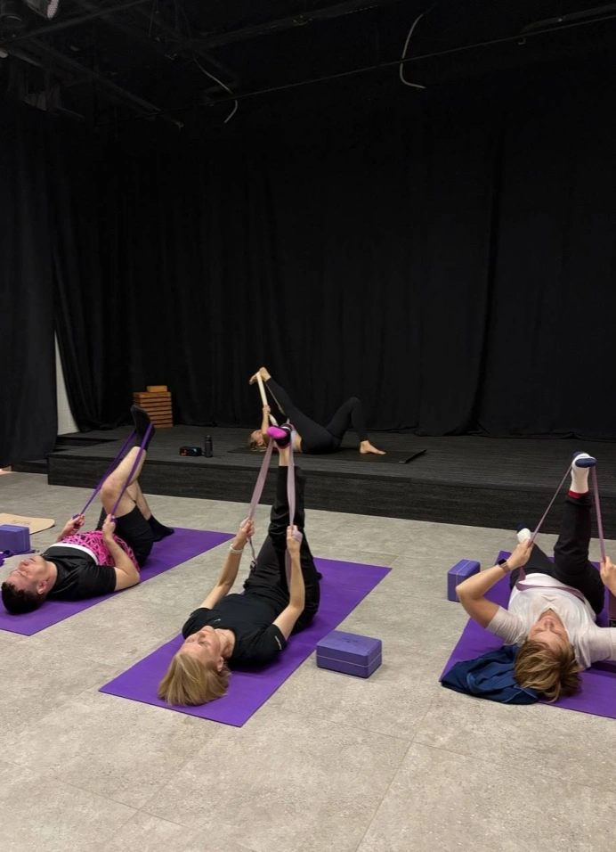 Занятия йогой в Ауре. Подходит и новичкам, и тем, кто уже практикует.