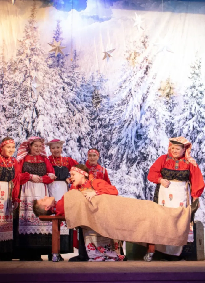 Программа представляет собой игровое действо и окунает зрителя в атмосферу Рождественских игрищ, которые проводились в этом селе в канун Рождества – в Рождественский сочельник. Включает в себя традиционные святочные игры и забавы, песни и хороводы. Также зрителю представлены традиционная коми-пермяцкая пляска «Тупи-тап» под печную заслонку и бытовые танцы – кадрили, которые молодёжь с удовольствием танцевала на всех праздниках. Активными участниками действия становятся и зрители, которым предлагается и «козу» подоить, и в «покойника» поиграть…