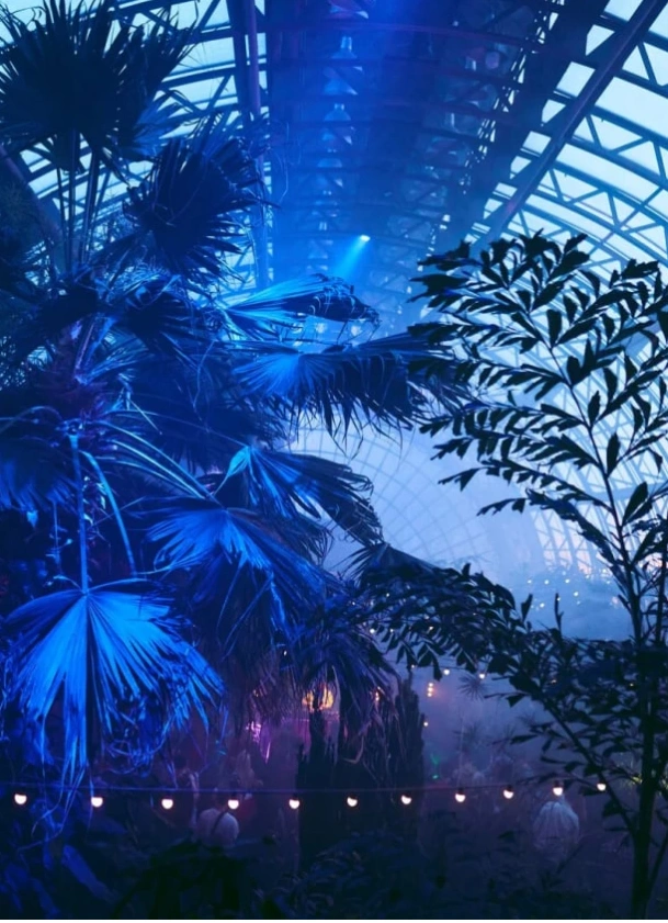 Откроются двери, за которыми прячется настоящий тропический лес: пальмы до потолка, лианы и цветущие растения.