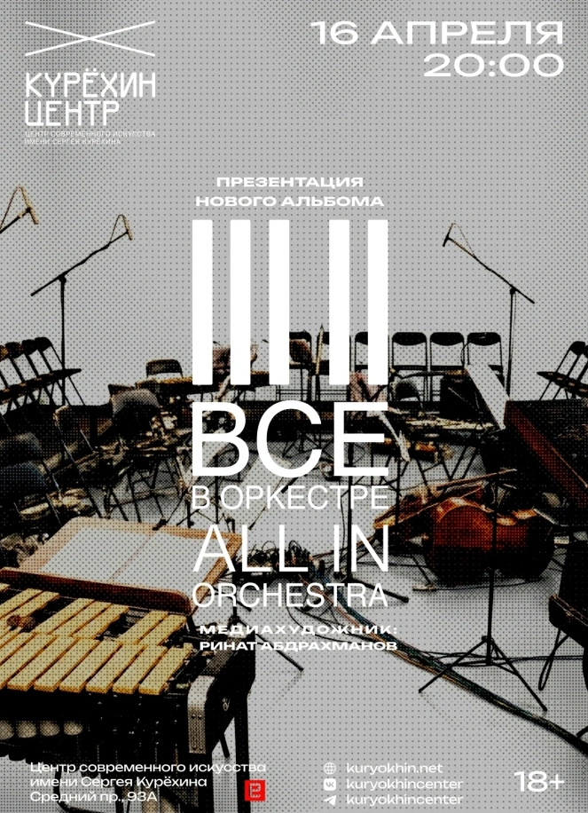 Это не очередные оркестровые версии известных произведений, а полностью авторский материал. Ребята устраивали камерную презентацию на Новой Сцене Александринского театра и делали масштабный рейв в старой Кирхе. Теперь настала очередь Центра Курехина и его уникального зала с акустикой, как в студии звукозаписи. Слышен будет каждый нюанс музыкальной ткани.