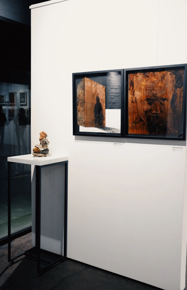 Александр Шамеев (выпускник ИПСИ): объекты из дерева в технике выжигания (серия «17 10 9 5 6 24»), где материал отождествляется с человеческой сущностью.