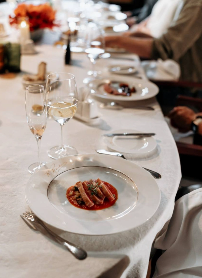 — Бефстроганов с картофельным кремом, бокал игристого брют, чай/кофе на выбор.