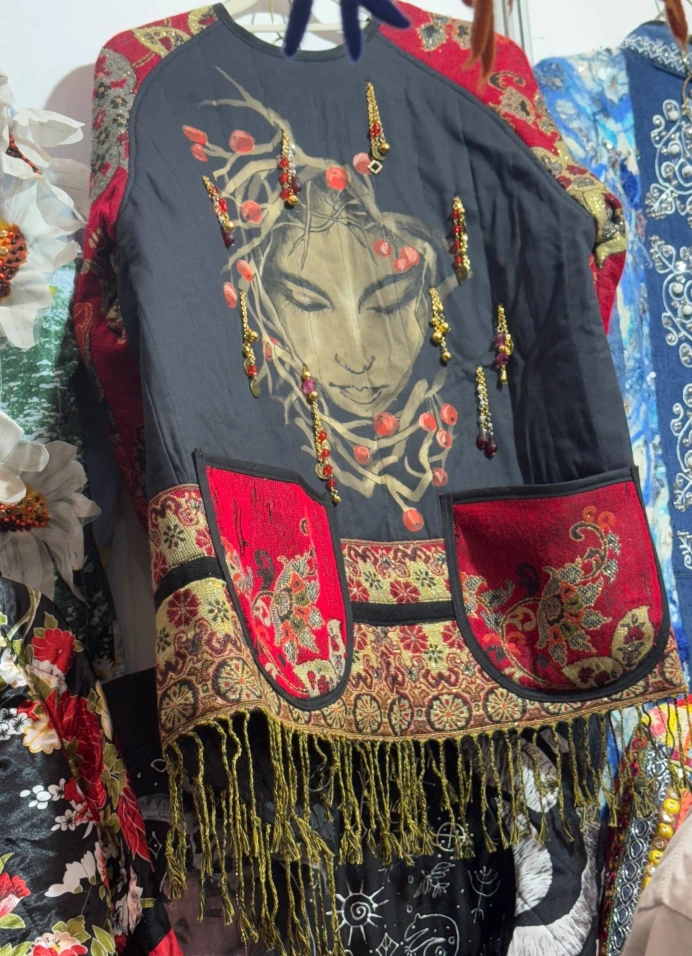 — Авторская одежда и аксессуары. Тысячи авторских аксессуаров из натуральной кожи — кошельки, ремни, браслеты, очечники и сумочки; авторские плащи и расшитые платья в пол, жилеты, юбки и брюки; шляпки, шапки, шарфы и платки ручной работы.