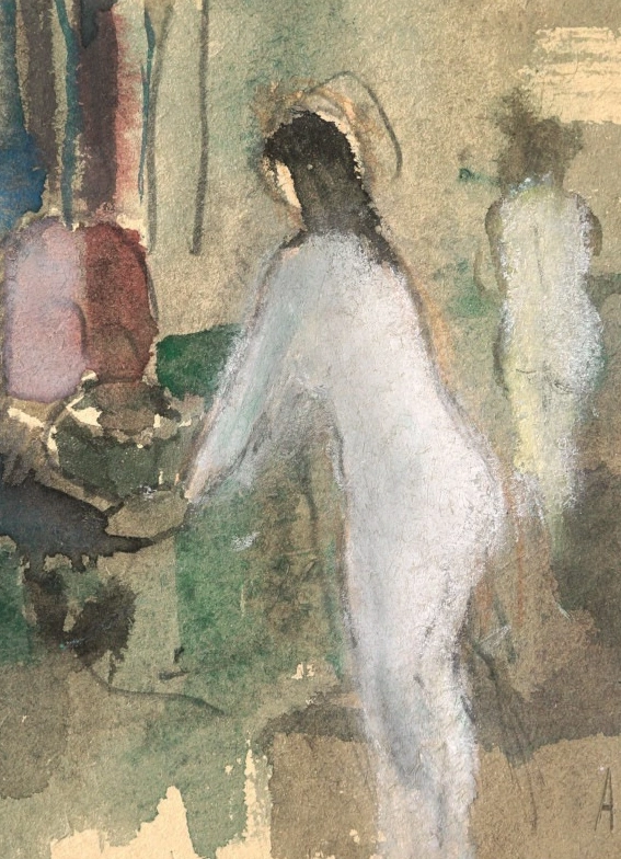 Александр Арефьев создал множество серий, многие из них известны лишь по названию. «Банной серии» повезло. Папка с работами 1949-50 гг. хранилась у его друга Родиона Гудзенко всю его жизнь. На выставке представлено более 70-ти работ.