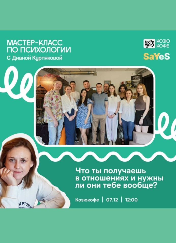 Воскресенье, мастер класс по психологии с Дианой Курпяковой.