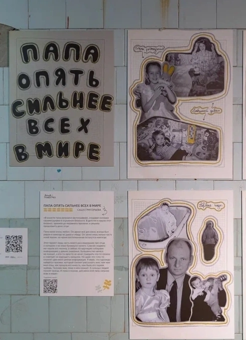 В экспозиции семь серий — от автопортретов и визуальных дневников до коллажей. Отдельный раздел — работы, созданные летом в ежегодном выездном лагере «Берег» с командой проекта «Анна помогает».