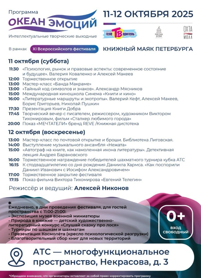 Фестиваль «Книжный маяк Петербурга» — праздник интеллекта, чтения и книгоиздания. Фестиваль посвящен книгам, образованию, кино, театру и мультфильмам.