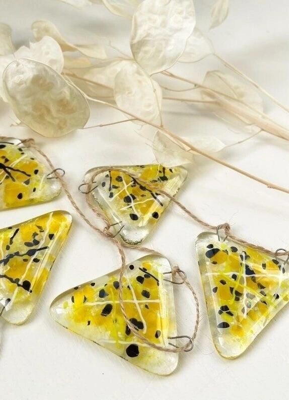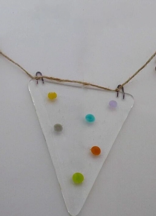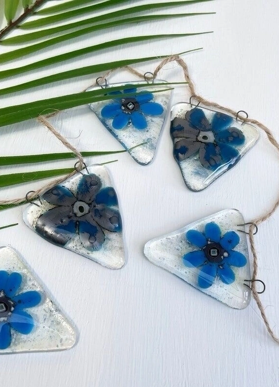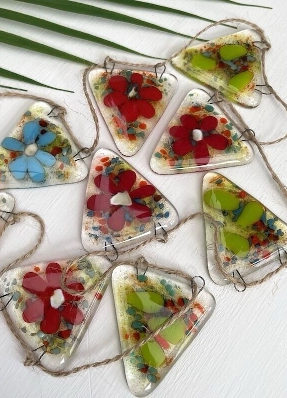 На мастер-классе ты сможешь создать яркую стеклянную гирлянду из семи элементов: подберёшь цвета, научишься резать и компоновать фрагменты стекла, а под руководством мастера оформите готовую композицию для последующего обжига.