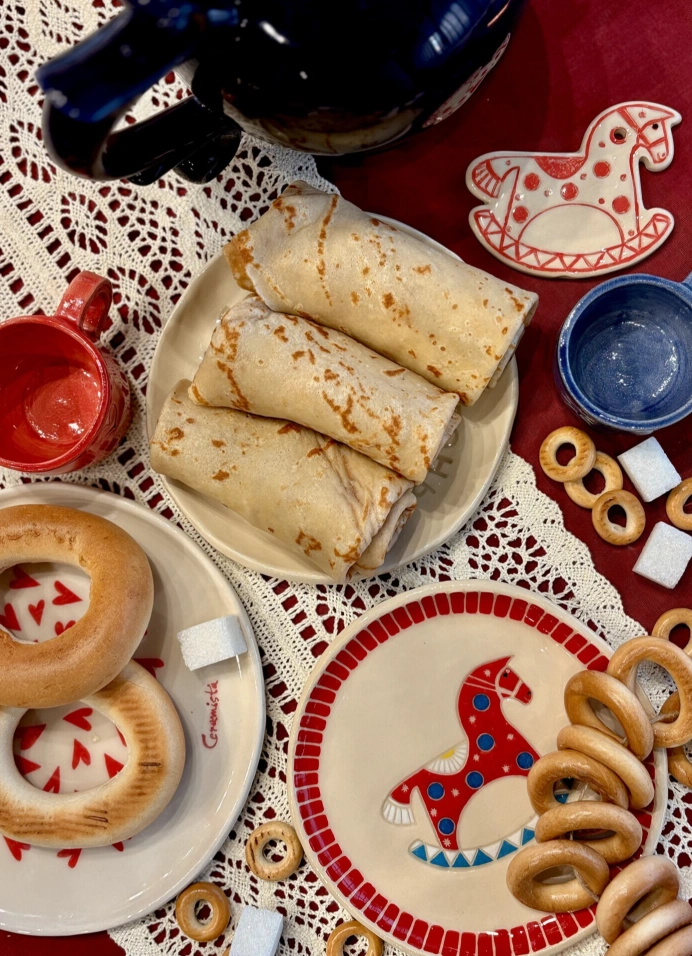 Попробуешь три сорта чая и узнаешь, как форма и толщина стенки влияют на раскрытие вкуса напитка. Для всех гостей будет угощение к чаепитию — блинчик.