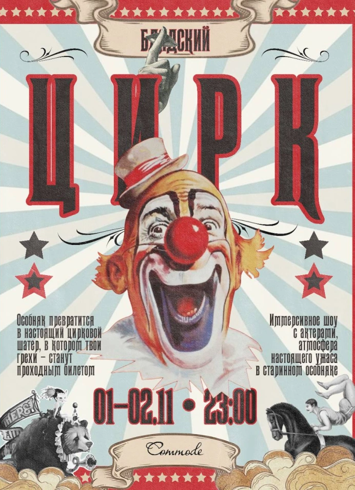 Гастролирующий цирк ужасов прибывает в Петербург и раскрывает свой шатёр в старинном особняке Commode.