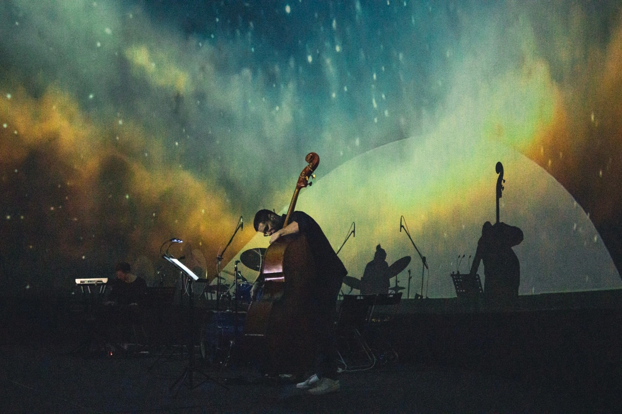 Каждый концерт превращается в мгогогранное путешествие, где драматические эпизоды соседствуют с вайбом ретровейва, камерная лирика сменяется психоделическими фантасмагориями, а минимализм лаконичного акустического звучания трио сочетается с глубокими электронными текстурами и экспериментальными эффектами.