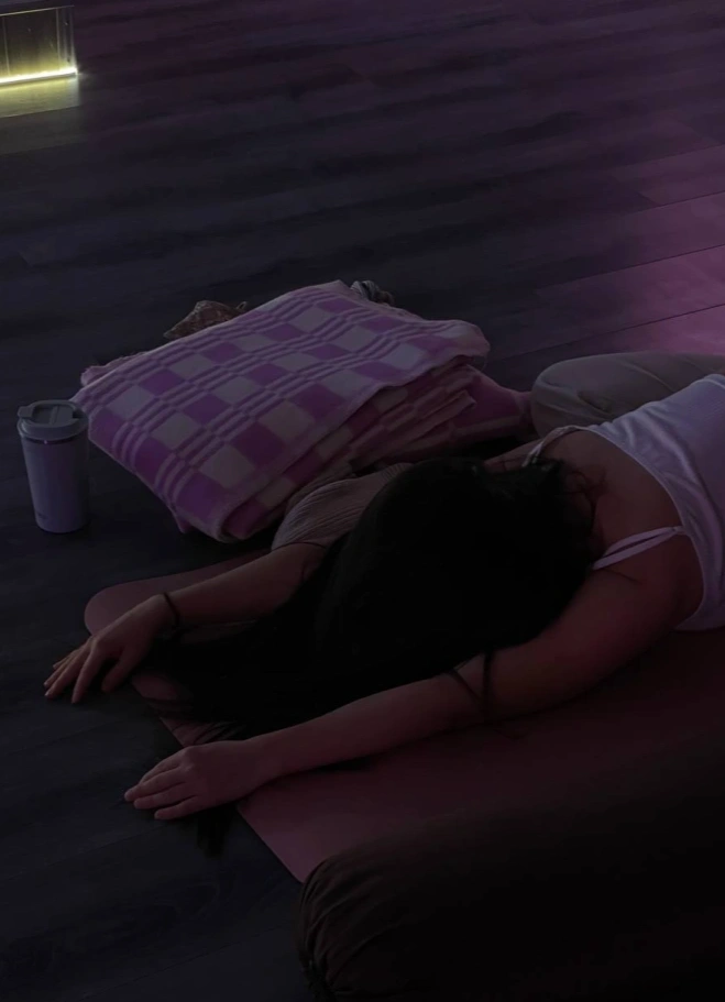И под конец — Шавасана —погрузишься в состояние ещё более глубокого расслабления, для лучшего усвоения полученного опыта. И всё это под звуки поющей чаши и мантропение.
