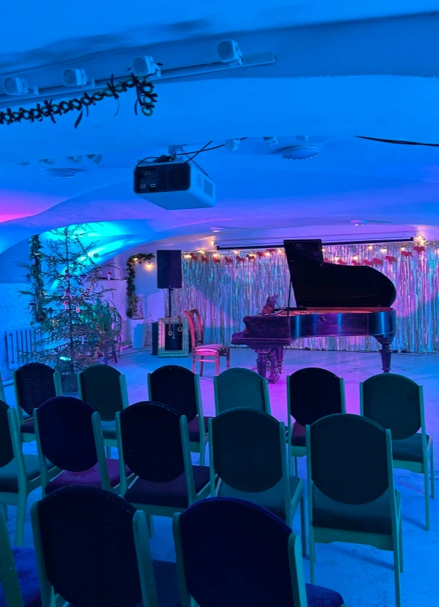В старинном зале со сводчатыми потолками и роялем 1901 года прозвучит музыкальный коктейль: от гитарных рок-баллады до джаза, от Шопена до импровизации на мандолине.