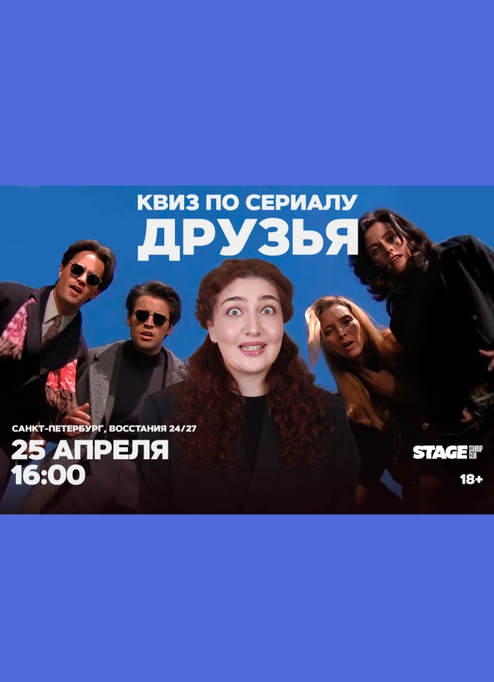 Квиз по сериалу «Друзья»— это комедийная викторина, где ты сможешь попробовать свои силы и показать насколько разбираешься в легендарном ситкоме. Квиз рассчитан на кругозор обычного человека, но где-то придётся подумать. Шоу рассчитано и на тех, кто любит «Друзей», на тех, кто любит интересные вопросы, и на тех, кто любит просто попить пиво уже со своими друзьями.