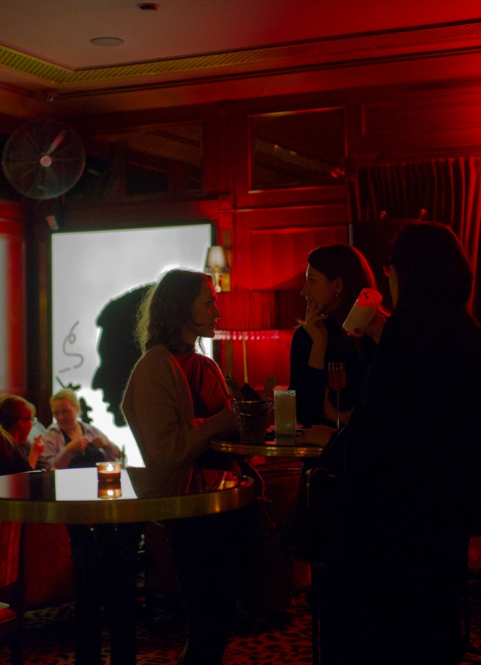 Встреча в роскошных интерьерах красного бархата, напоминающих парижский богемный салон.