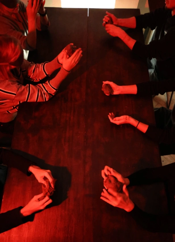 1,5 часа в полной темноте — в камерном формате и бережной атмосфере. Ты работаешь самостоятельно и в парах, шаг за шагом следуя голосовым инструкциям. Созданные объекты остаются в пространстве: мастер-класс ориентирован на процесс и ощущения.